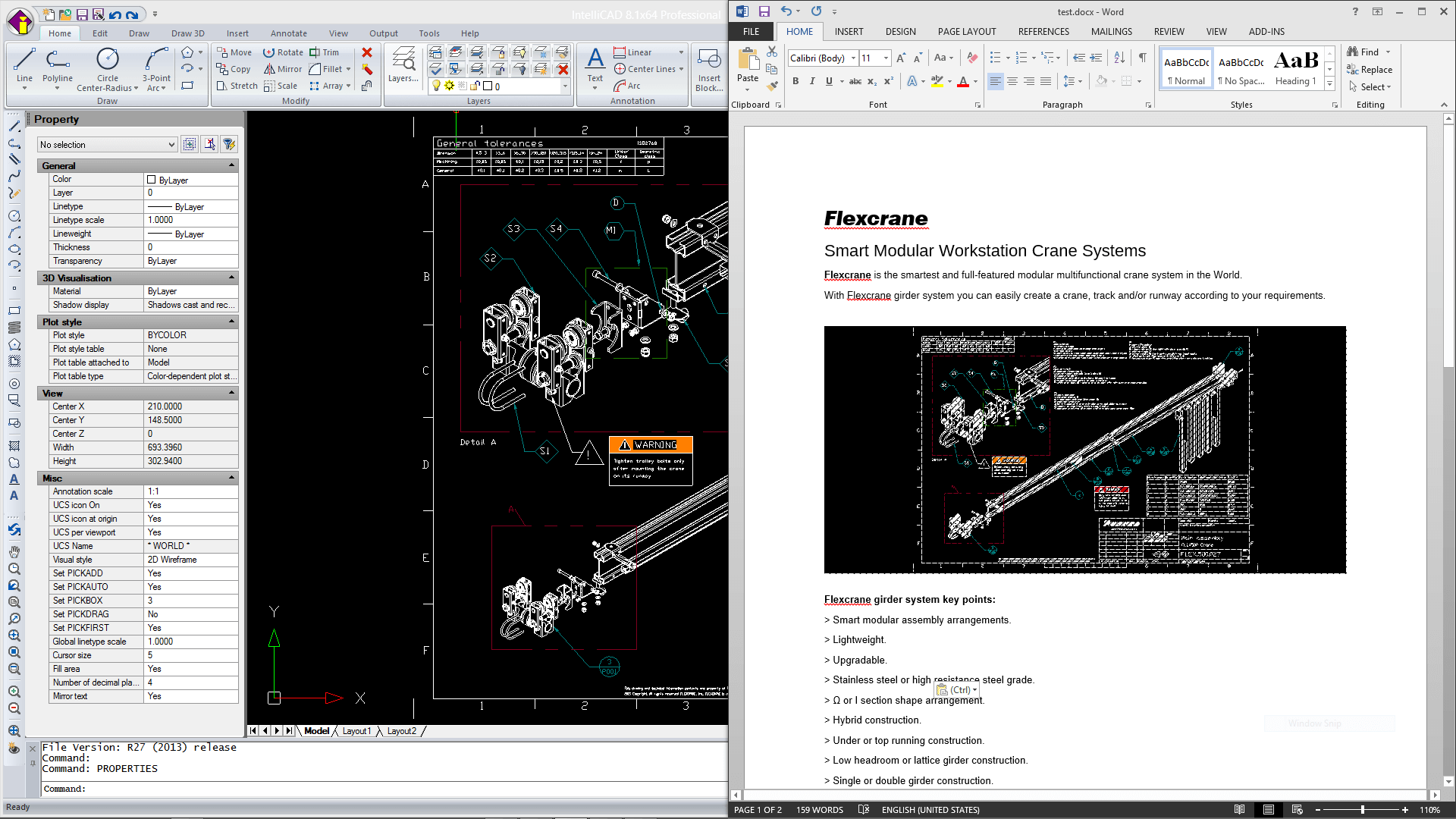 CMS IntelliCAD provides in-place editing of Microsoft® objects, such as those created in Microsoft® Word and Microsoft® Excel software programs. In-place editing makes it easy to share data with other users and programs. For example, you can include IntelliCAD drawings in files created using Microsoft® Word, and you can insert files created using Microsoft® Word into your IntelliCAD drawings.