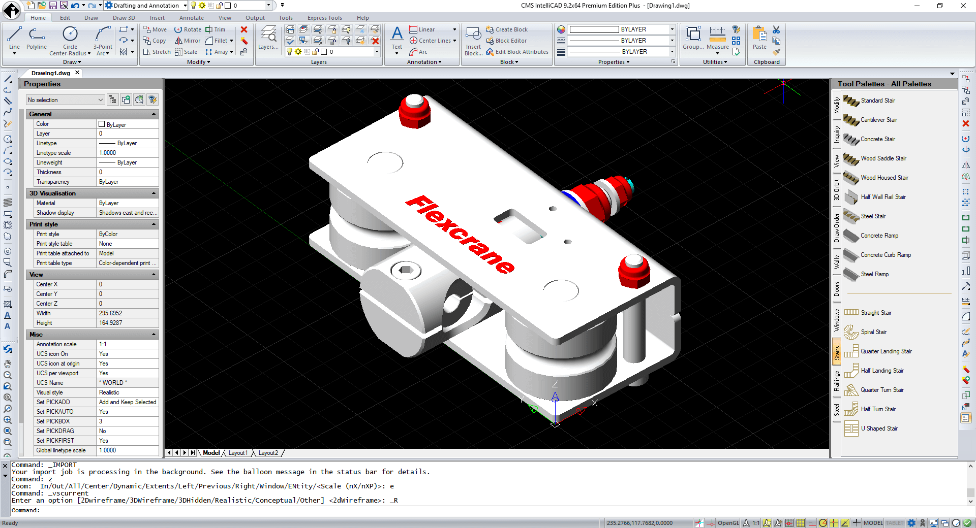 • New integration with Artisan Renderer on all CMS IntelliCAD 8.2 versions allows users to quickly create a photo-realistic image of models using a wide range of pre-set materials and lighting setups combined with the ability to create custom lights and realistic materials.